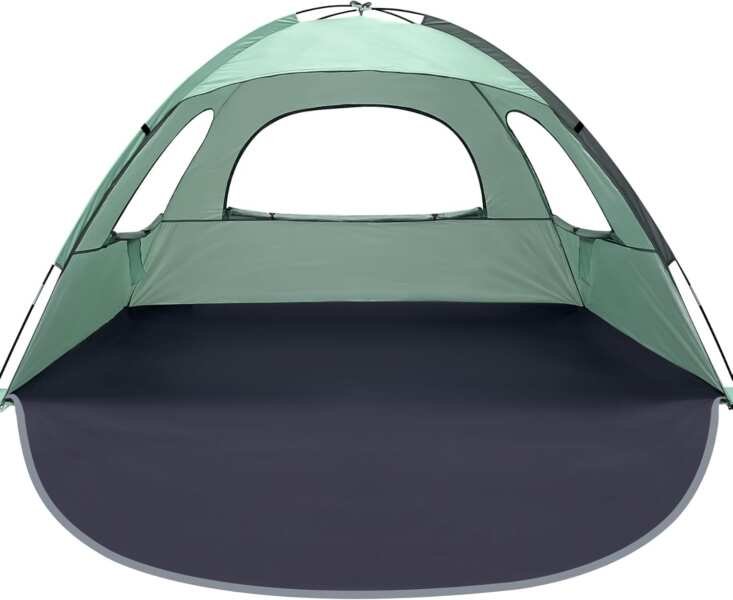 My first setup was in my backyard, and then again on the beach. The instructions are clear, and the color-coded poles (if applicable, though not explicitly mentioned, often a feature) would have made it even faster. In my living room, it took me about 10 minutes to get it fully erected and pegged down. On the beach, with the wind as a minor challenge, it took closer to 15 minutes for the first proper setup, including filling the sandbags. The fiberglass poles are indeed thicker and feel much more substantial than those on many other tents I’ve used. The fabric has a pleasant feel, and the color (I tested the mint version) was attractive and true to online representations. The extendable floor was easy to unfold and secure.